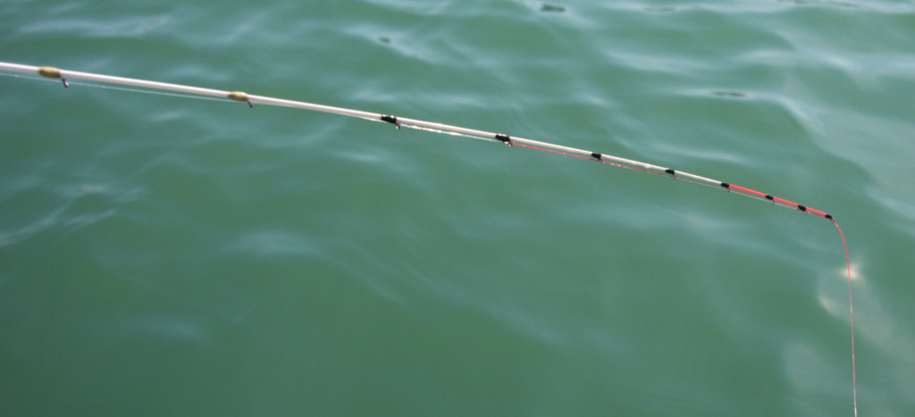 チヌはフォールしてくるものに反応しやすいので、底から竿1本分上からはテンションを掛けながら超スローにサシエ先行で落としていく。