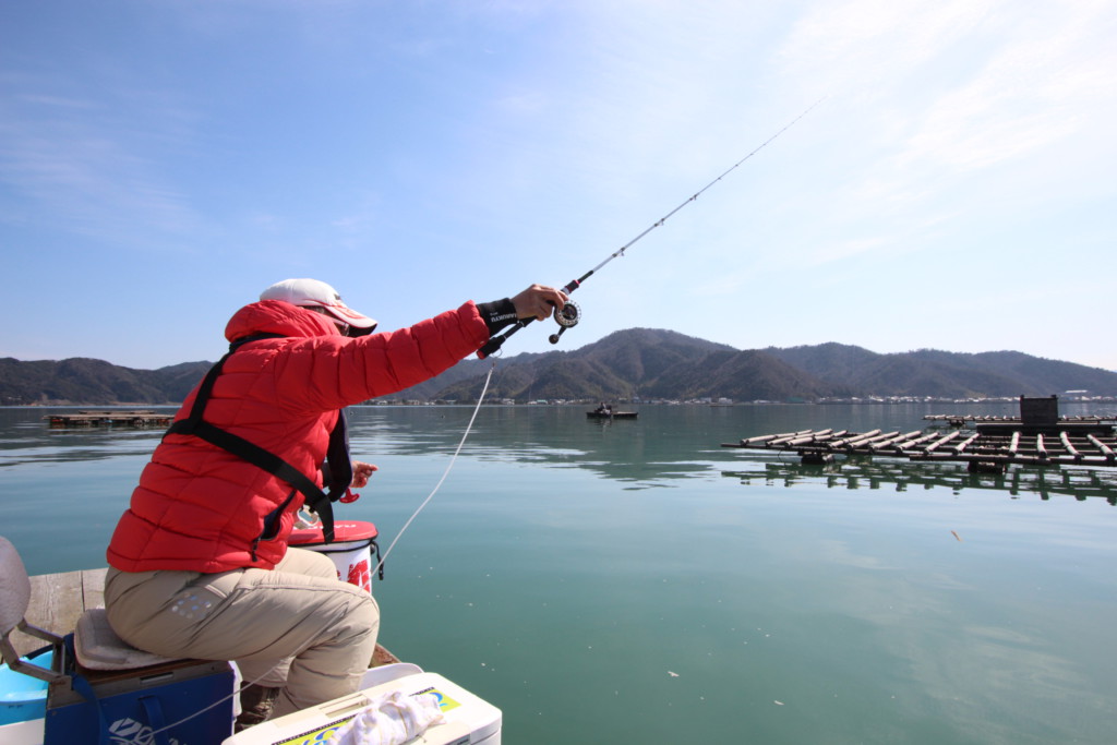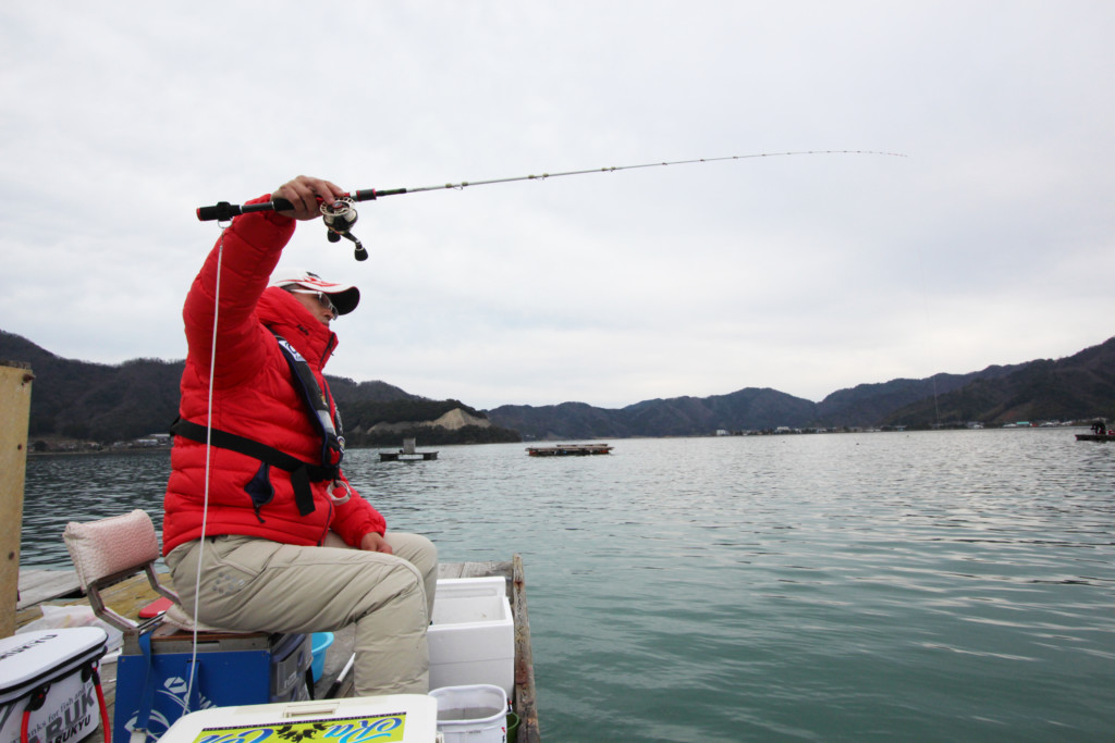そのため、波や筏の揺れでサシエが不自然に動かないようオモリとハワセ分を調整する。