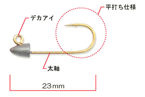 太軸仕様の針でギガアジが掛かっても伸ばされず、安心してやりとりすることが可能。大物狙いには必須のジグヘッドとなっています。
