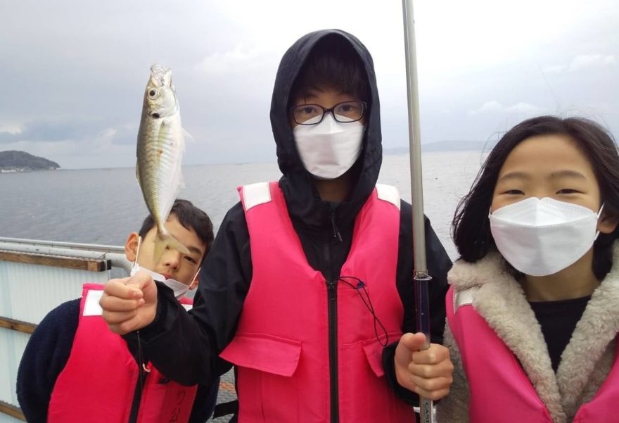 アジ25cm、カサゴ13cm、キス17cm、サヨリ34cm頭に15尾、ウミタナゴ25cm、メバル13cm頭に2尾。