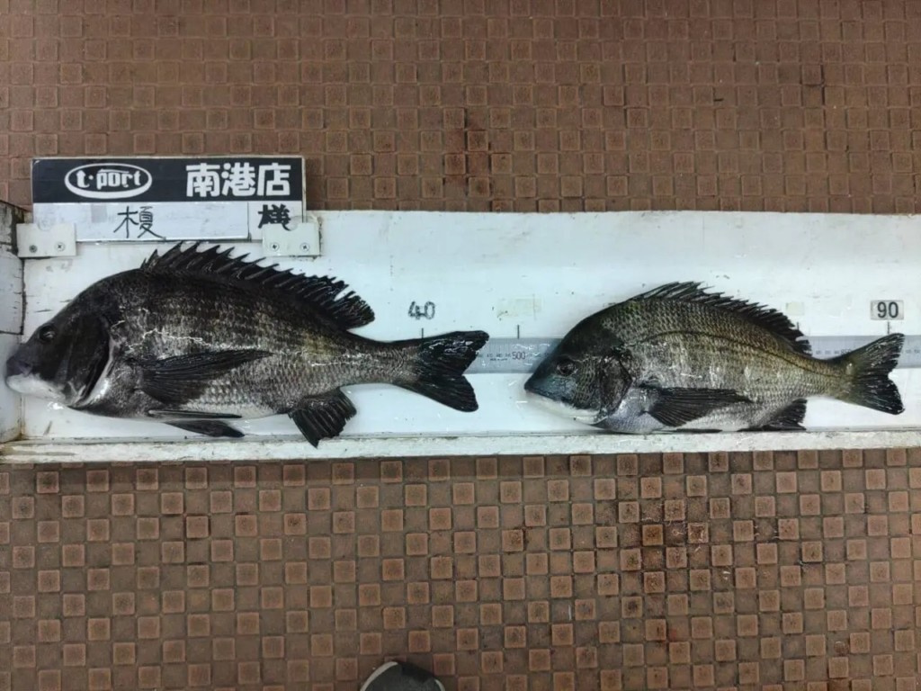 【南港周辺】で18日辻野氏メバル23cm頭に7尾をルアーで、榎氏チヌ47cm頭に2尾をシラサエビのエビ撒き釣りで。