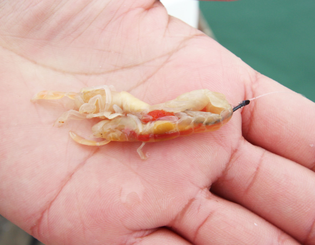▲ボケも効果的なエサ。アピールを高めるために2匹掛けも