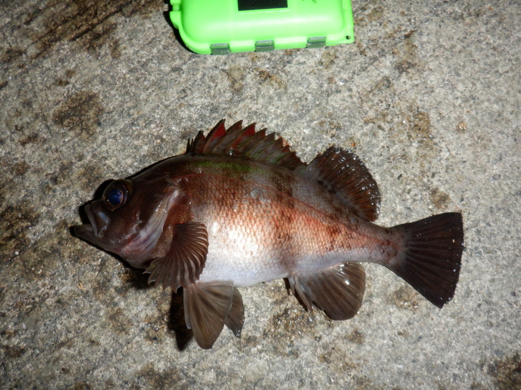 青イソメエサの釣りは、夜釣りが1番効果的。ガシラまじりの釣りだが、良型メバルが釣れる。