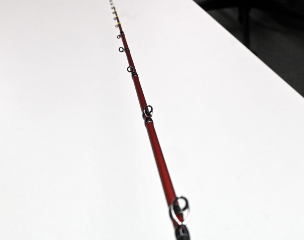 ただ船のマルイカ釣りは、当然船の上下動があり、それを緩和させる狙いでこの長さにした経緯があるという。またそれでいて細かく竿を動かすタタキのアクションも行いやすい長さ。そのバランスが167cmという全長になっています。