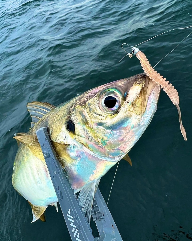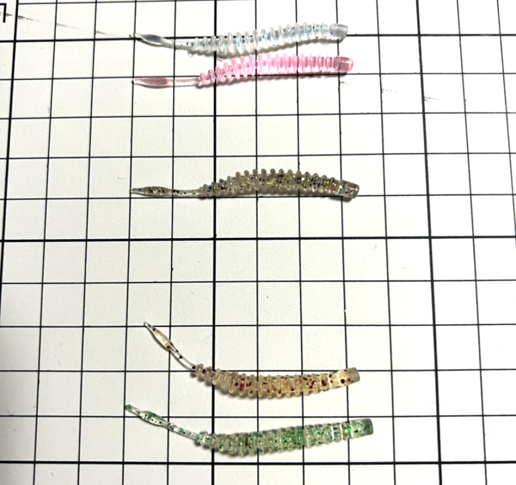 さて、前置きが長くなってしまいましたが、つまりはジグヘッド+ワームがアジとコンタクトする部分。コマセで寄せるわけではないので、ワームのカラーローテーションは非常に重要になります。