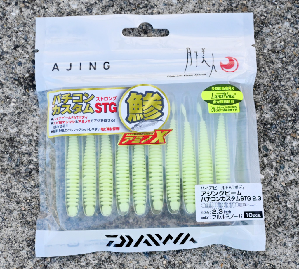 ちなみに橋詰さんの好きなワームに、ダイワ「月下美人アジングビームバチコンカスタム」や「月下美人アジングビームバチコンカスタムストロング」が挙げられる。