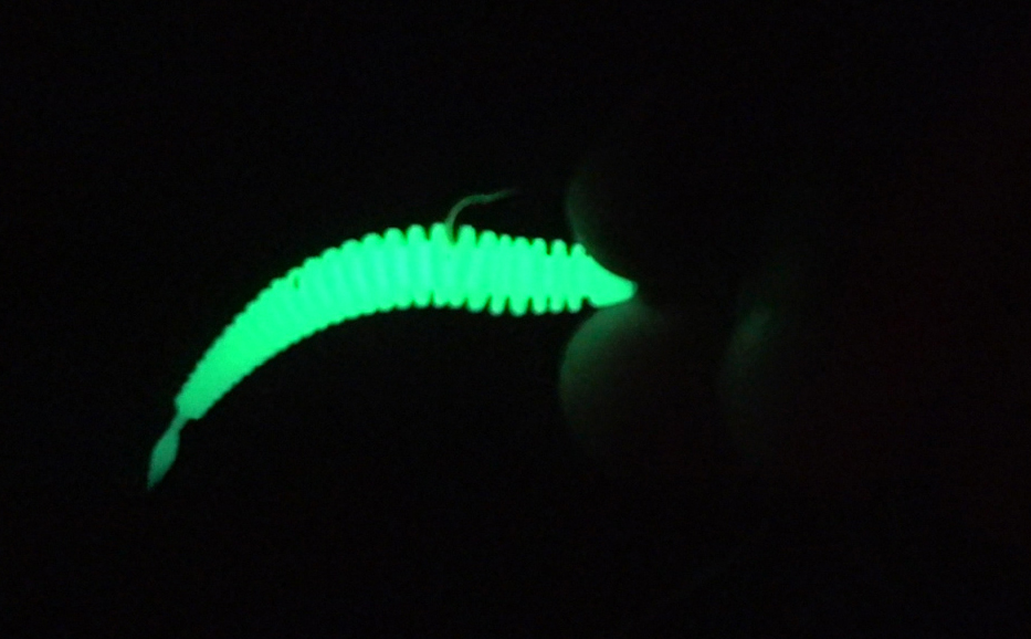 続いては中間のケイムラとして挙げたのが、③ちらし寿司ドットグロー。ケイムラとグローの点発光でMAXほどケイムラは強くないが、グローの点発光もあって強過ぎず弱過ぎないカラー。