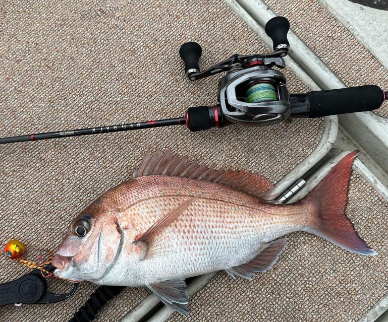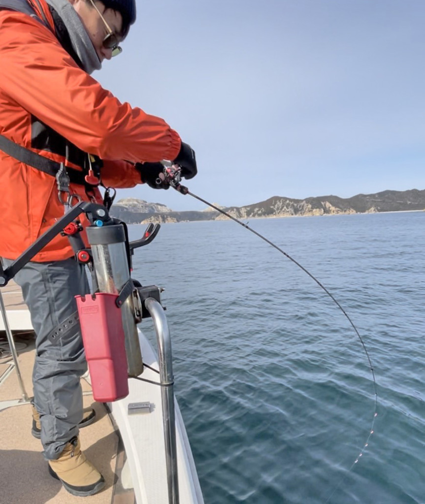 ジグパラマン:魚を掛けてからの安定感も気に入っているポイントです。ロッド自体がしなやかな動きで、マダイの引きを吸収してくれます! なので、掛けた後はただただリールを巻いているだけです(笑)。