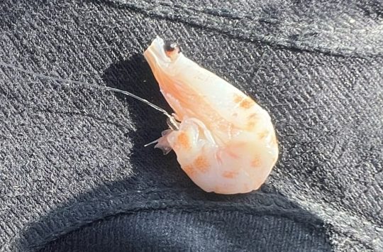 オキアミを付ける時は、必ず尾バネをカットし、エビが丸くなるように付ける。針先は見えないように付けることが大切だ