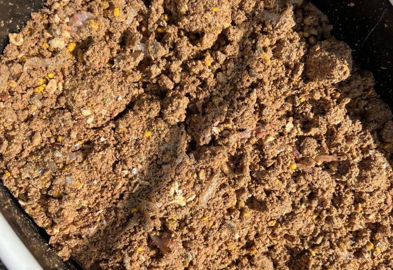 また、チヌ釣りにおいて、マキエは必須だそうで、大向氏は取材日、30kgのマキエ(オキアミは3㌔で、配合エサをメイン。水を入れた重さ)を持ってきていた。チヌを集めるため、マキエは多めに持ってきておいた方がよいらしい。