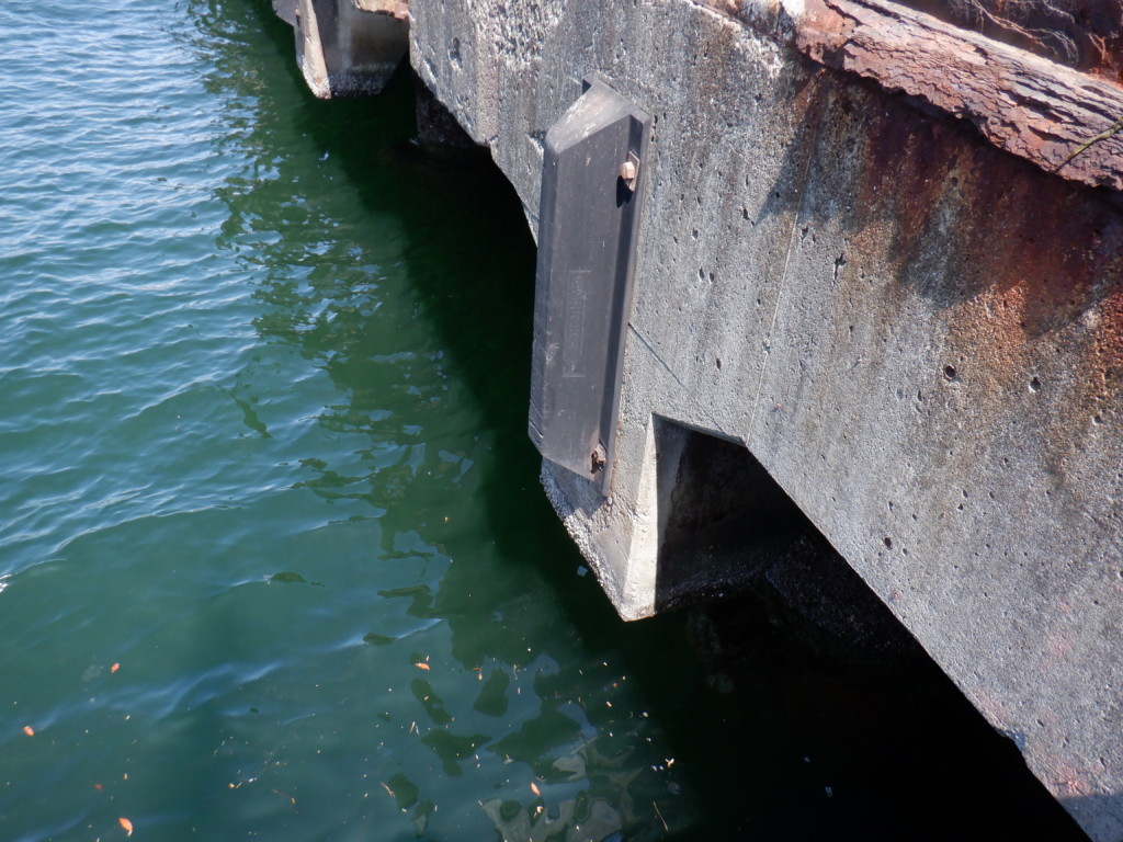 足下がスリット状で、10mほど奥まで水がきている。ここにチヌ、ハネなどが入っているようで、昨年はカワハギもよく釣れた。