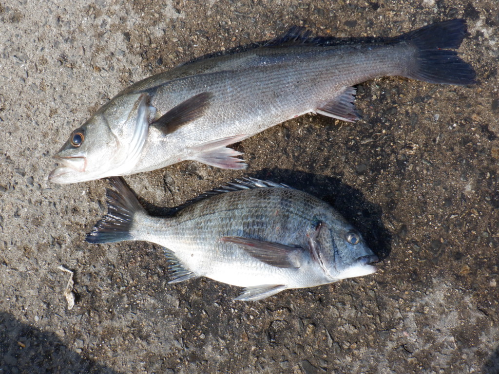 その後、西寄りの風が吹き出し、道糸があおられて釣り辛くなってきたのと、マキエが残り少なくなってきたので、納竿した。