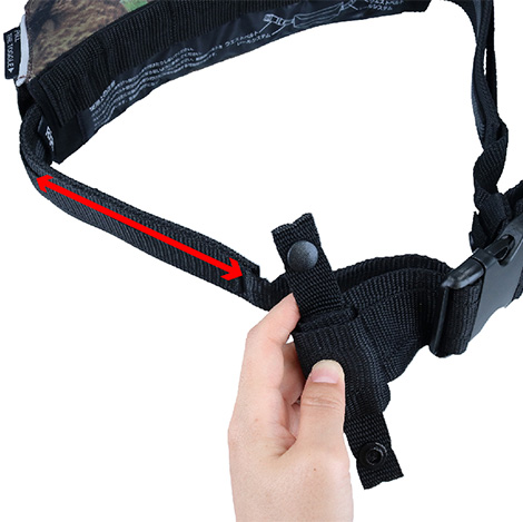 ③ベルトの内側でボタンを留めます。