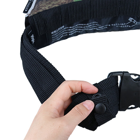 ①先に着用して腰周りを調整し、ベルトが余った状態にします。
