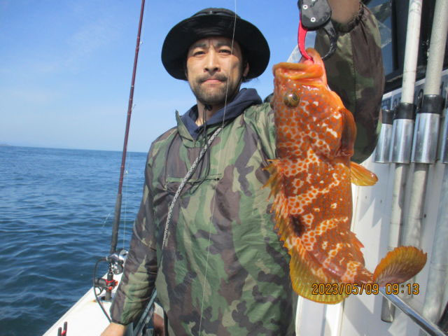 生きエサの根魚狙いでは、夏の魚「アコウ」の食いが上昇中。45cm前後のビッグサイズもまじって、よい人は2ケタ前後上げているほか、ガシラ、ソイ、アオハタ、ヒラメなども釣れており、美味な根魚三昧が堪能できます。
