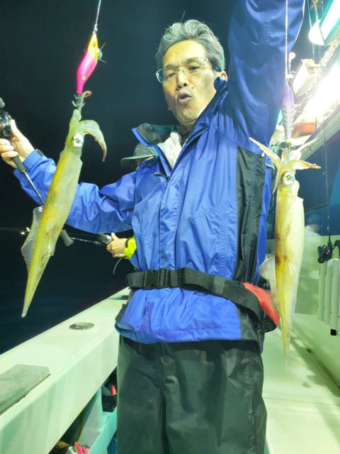 夜のイカはマイカ、ヤリイカが入り混じってよい人50パイオーバー、少ない人でも20パイ弱の日もありました。イカはこれからも楽しみです。