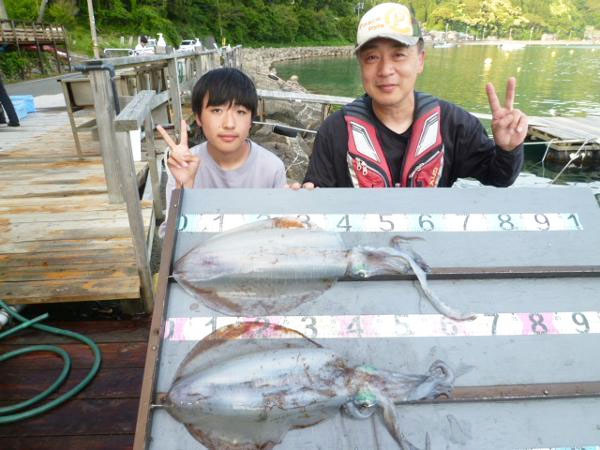 音海の筏では胴長30cmオーバーの大型アオリイカが続々と登場。最大では胴長42cmの特大サイズも上がっていました。