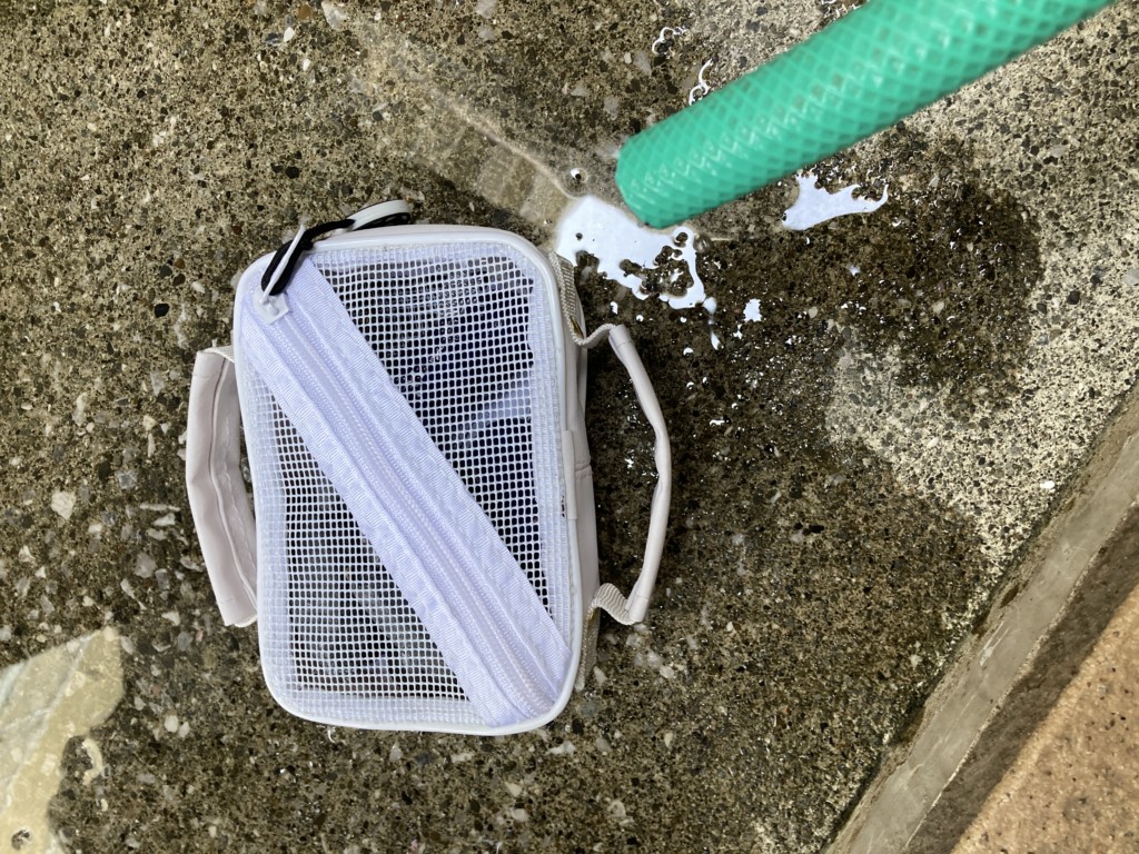 両面メッシュのジッパー付きなので、サッと収納できて超便利。