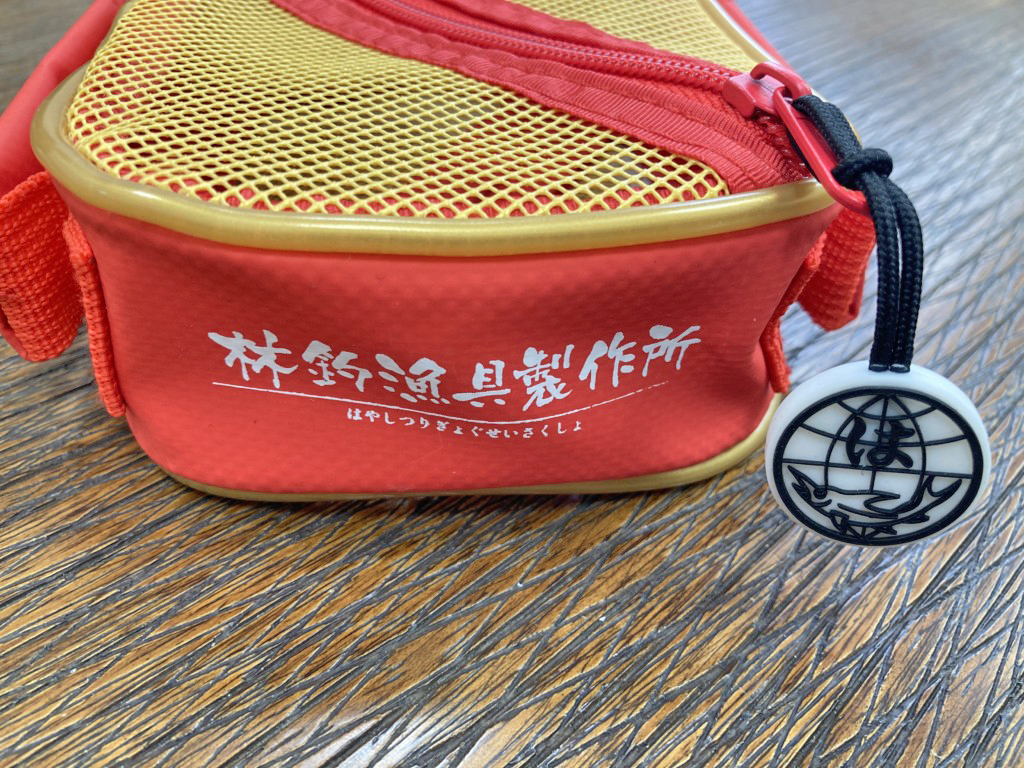 ジッパーの持ち手には、林釣漁具製作所の「マルハ」シンボルマークが付いています。