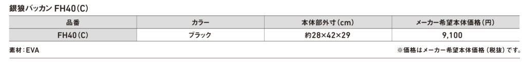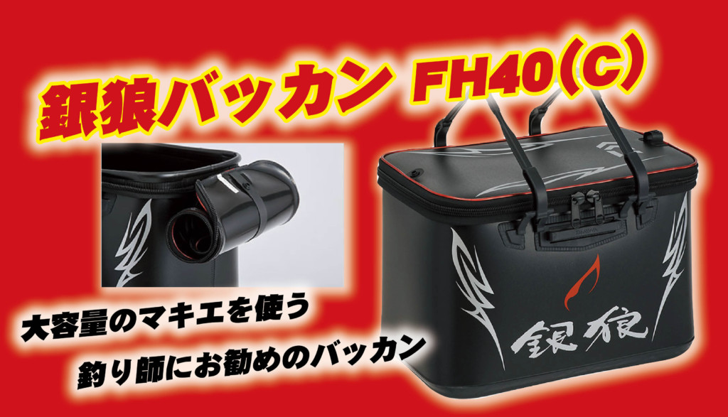 この「銀狼FH40 (C)」は本体部外寸が約28×42×29(cm)と大きく、マキエを大容量入れることが可能です。