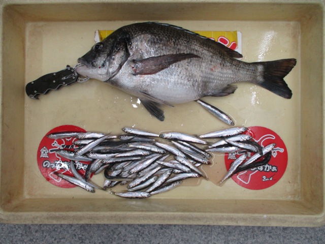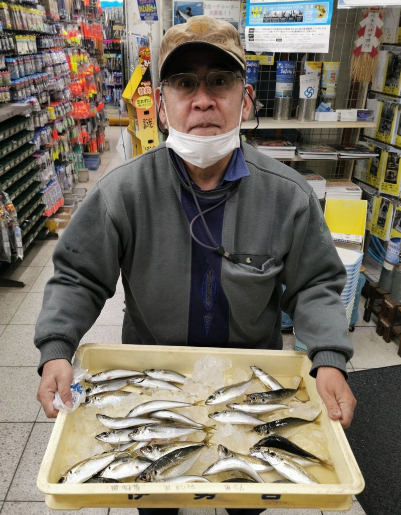 泉佐野食品コンビナートでアジ15~25cm5尾、イワシ15cm2尾、メバル12cm2尾。