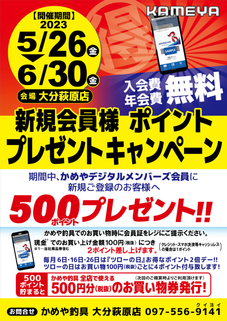 期間中、かめやデジタルメンバーズ会員に新規登録の方に500ポイントがプレゼントされるキャンペーンが開催されます。