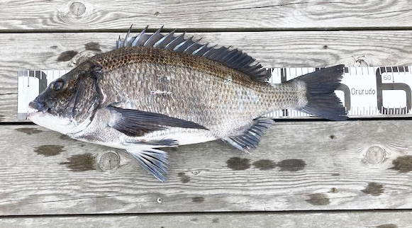 音海の筏にも大型アジが回遊しています。40cm前後の大型を2人で10尾上げた日もあるなど、条件次第では船釣りに負けず劣らずの好釣果が狙えます。大物では年なしチヌも姿を見せていました。