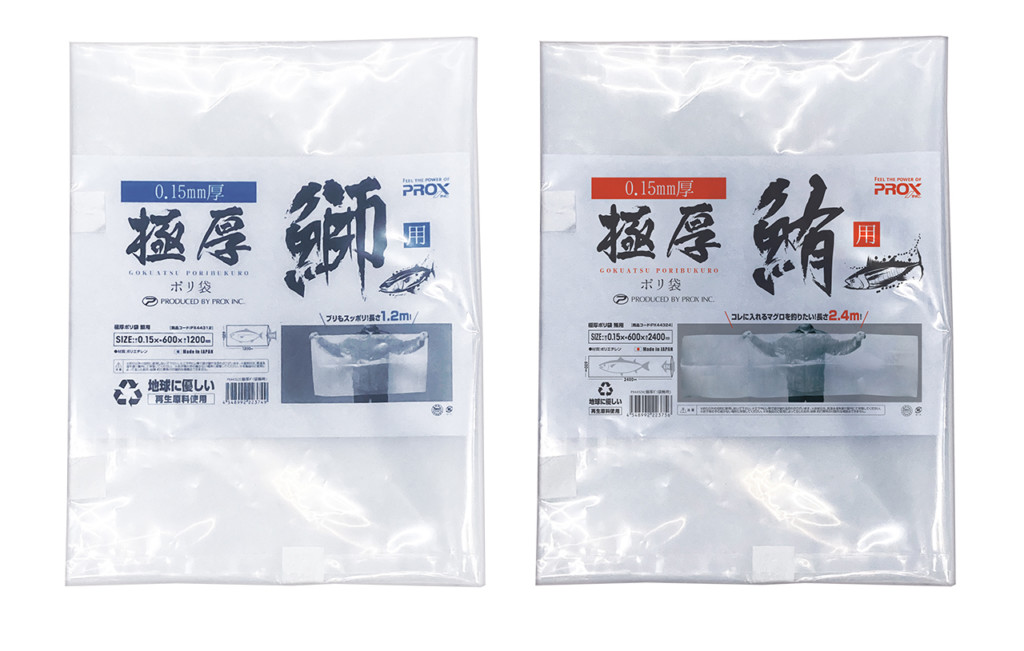 クーラーやフィッシュキャリーのインナーバッグとして最適な極厚ポリ袋、お値段は鰤用で300円、鮪用で600円(ともに税別)とお求めやすい低価格です。