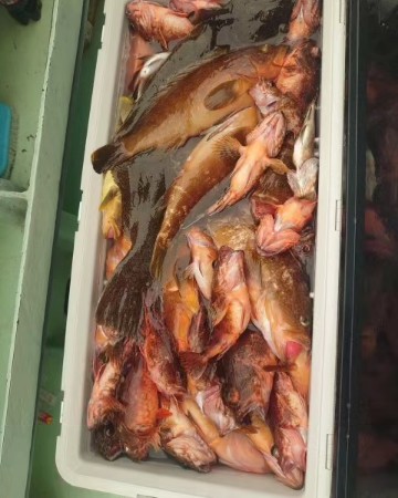 根魚狙いは、生きアジのエサを使い始め、50cm前後のヒラメがまじり始めています。ほか、メインのアコウやガシラは30cm前後を主体に上がっており、ほかにもマトウダイやアオハタなどもまじって多彩な魚種が釣れています。