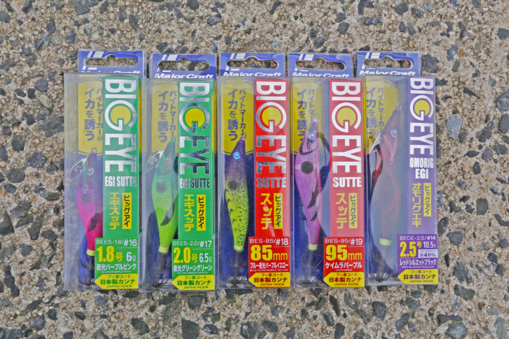 「ビッグアイシリーズ」は鉛スッテ、スッテ、エギスッテ、エギ、オモリグエギの5種類がラインナップされています。