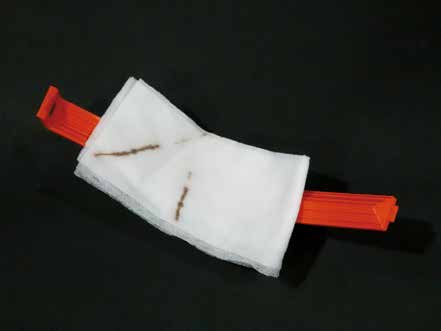 その名の通り、ラインをキレイにするためのアイテムで、使い方も写真の通り。ロッドのブランクスと一緒に、ウエットティッシュでラインを挟むだけ。