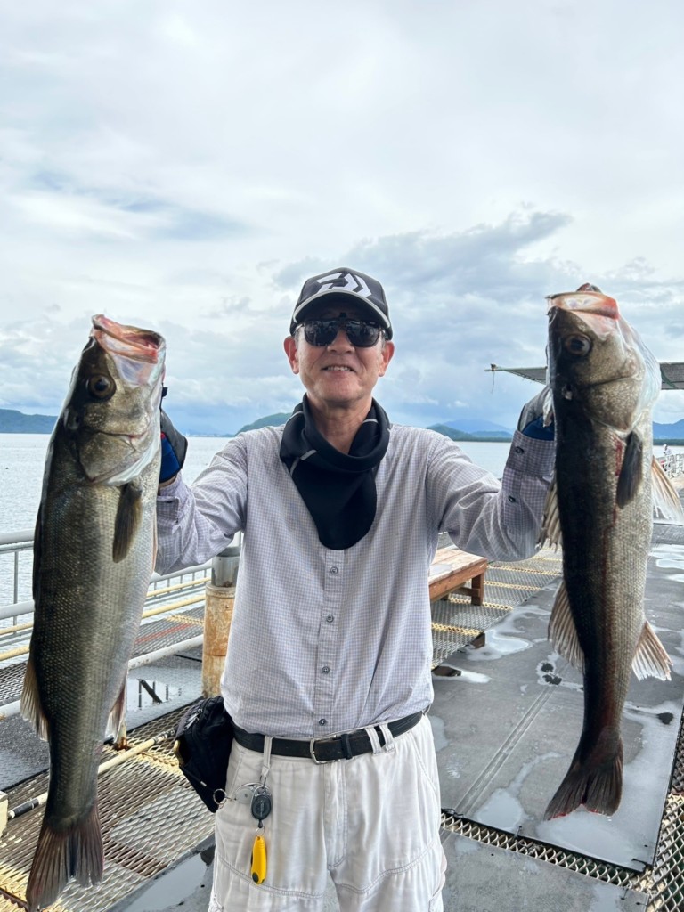 観音寺周辺でチヌ40cm頭に3尾、シーバス60cm頭に2尾、キス18cm頭に10尾。