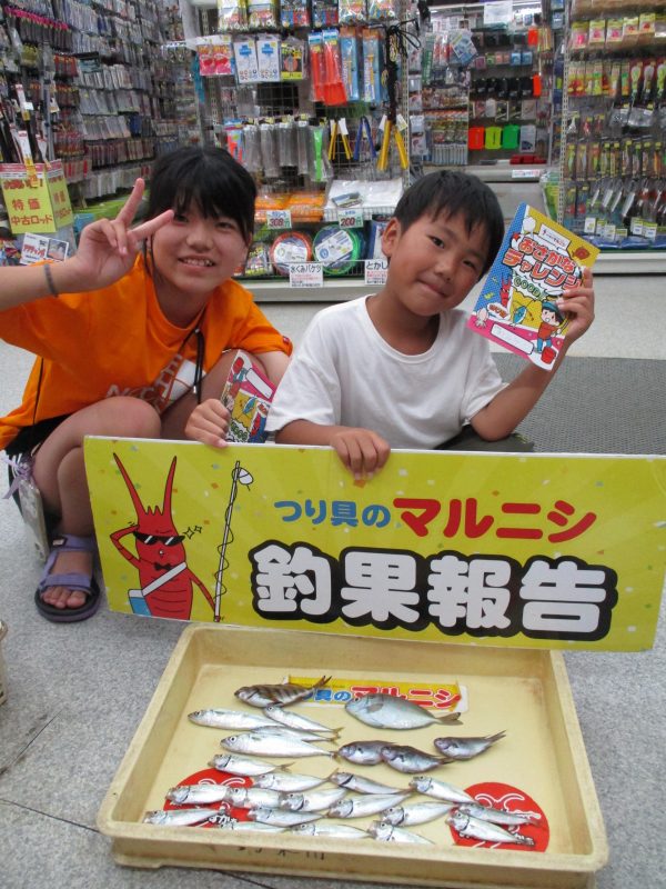 灘浜周辺でキス15cm頭に40尾、豆アジ10cm頭に30尾。