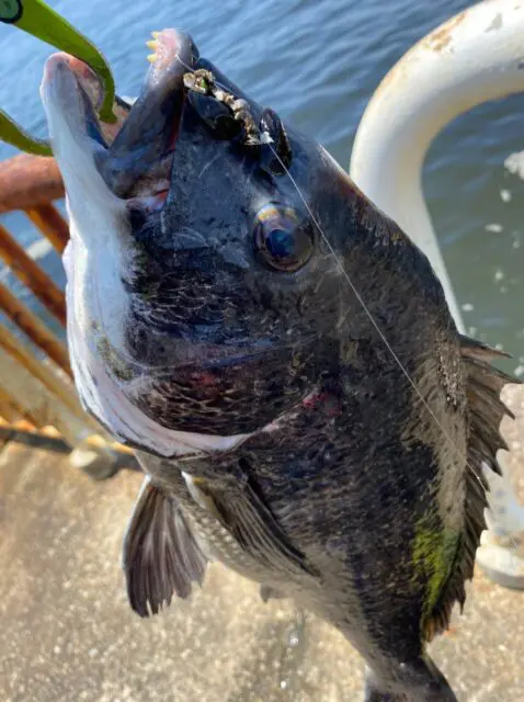 【南港大橋】で6月27日チヌ52cmをイ貝の落とし込み釣りで。
