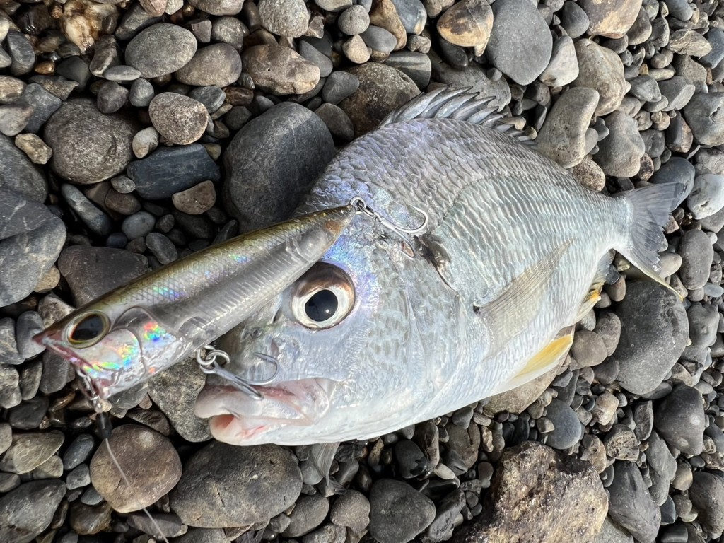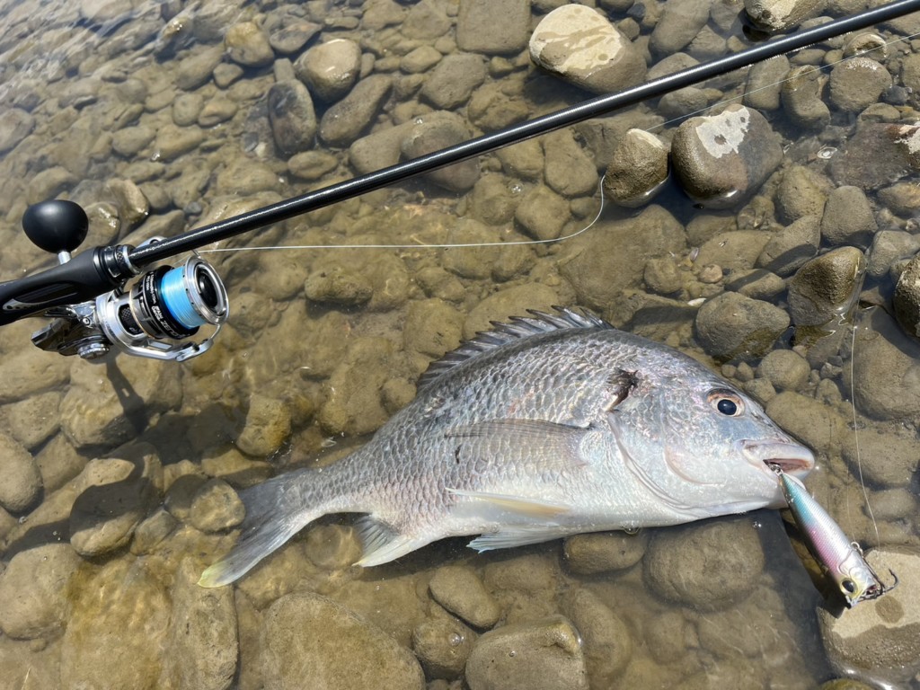 35~45cm程度が釣れ、 ルアーは7cm前後のポッパーまたはペンシル。朝、夕まずめでも全然大丈夫、 1番狙い目なのは日中です。