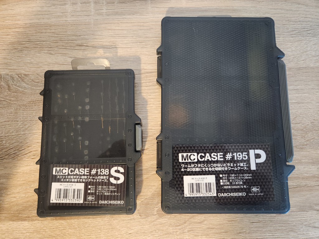 こちらはジグヘッドの収納に最適な「MCケース#138S」と「MCケース#195S」。