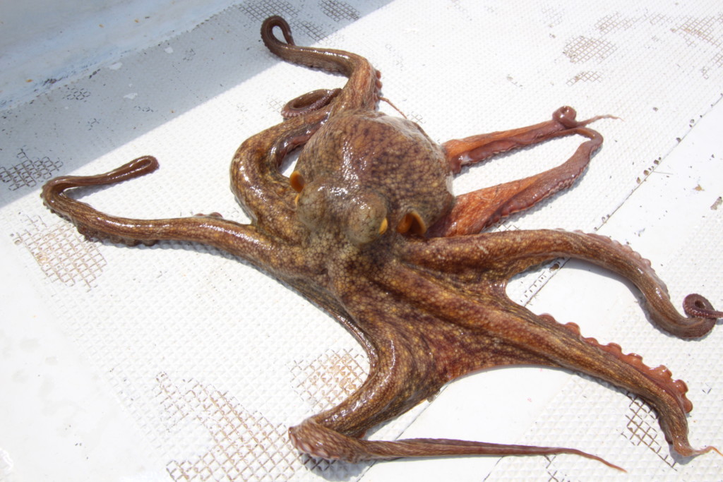 梅雨の時期から9月の頭くらいにかけて、マダコが産卵のために岸に寄って来ます。