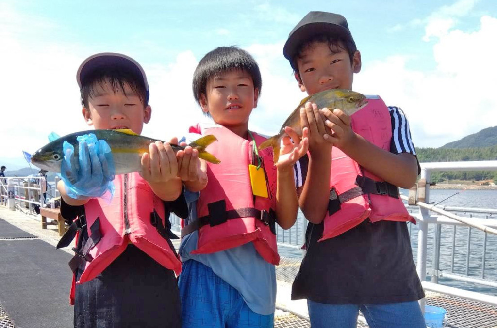 アジ10cm頭に150尾、メジナ24cm頭に3尾、カサゴ20cm頭に2尾、サバ15cm頭に100尾、キス15cm。