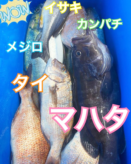 釣り堀ではマダイを主体に、メジロ、シマアジや天然イシダイ、カンパチ、マハタなどが狙えます。