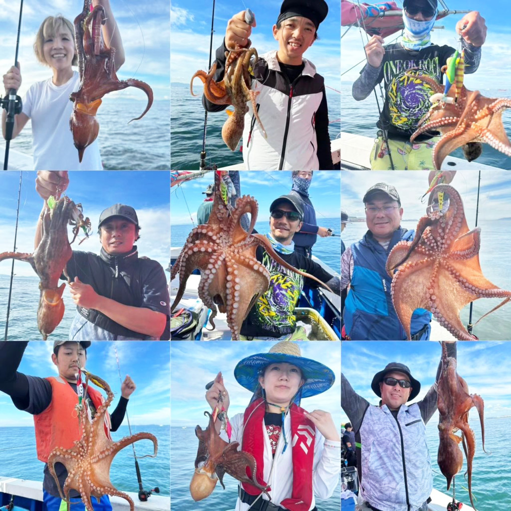 マダコは3kg級や4kg級など大型もチラホラと姿を見せており、型狙いも期待大。数も1人2ケタが期待できます。