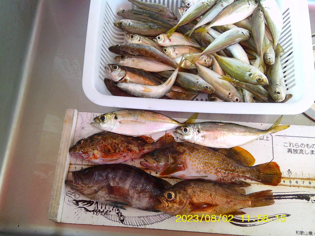 アジ16~18cm3尾、豆アジ6~10cm290尾。