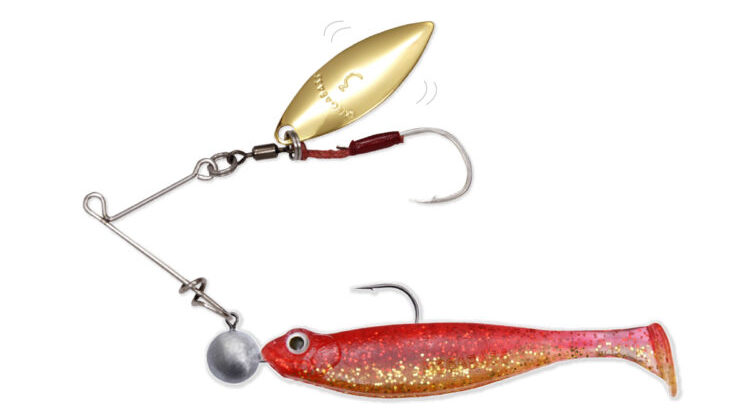 それが、ジグヘッド11g〜14gに「スーパースピンドルワームSW 4インチ」or「ハゼドンシャッドSW 4.2インチ」という組み合わせに「マキッパスピナー」を取り付けたセッティング!