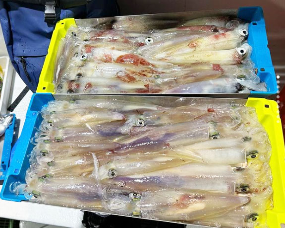 沖釣りは、マイカの乗りに日ムラがあったものの、よい日には引き続き好釣果が出ています。深夜便では80パイ超、オールナイト便では90パイほどの大釣りも出ていました。