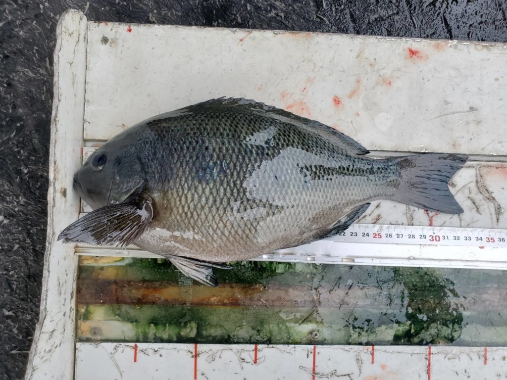 イシダイ30頭に2尾、イサキ13頭に20尾、バリ39cm頭に51尾、チヌ45cm頭に6尾、クロ32㎝頭に116尾、セイゴ33cm頭に4尾マダイ24cm頭に179尾、アジ26cm頭に多数、イシガキダイ16cm、カサゴ18cm頭に4尾、キジハタ30cm頭に7尾、キス18cm頭に6尾、サゴシ42cm頭に11尾、サバ25cm頭に6尾、サンバソウ18cm頭に2尾、ヒラメ43.6cm、ヘダイ43.5cm頭に3尾。