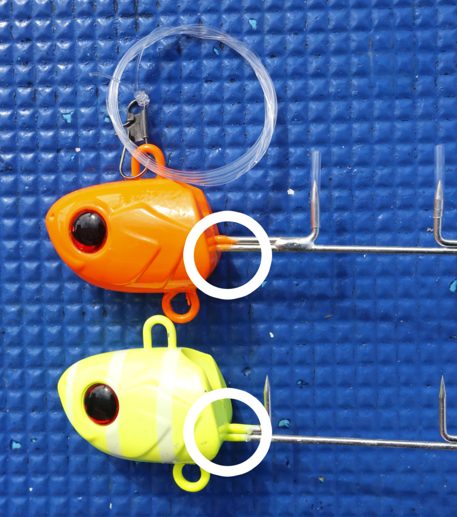そんなスゴイフックですが、通常のテンヤに比べて少し下から出ているんです。