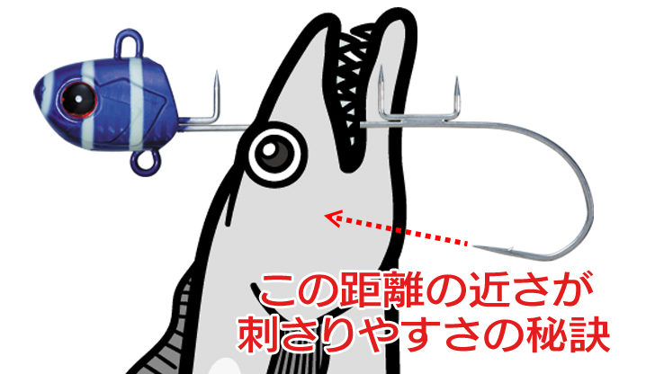 この時にアワセを入れるのですが、針先が上に向いていることでタチウオの距離が近くなることに加え、突き上げるような刺し方になるので刺さりやすく、バレにくいフック形状になっているんです!