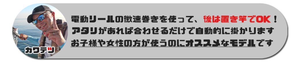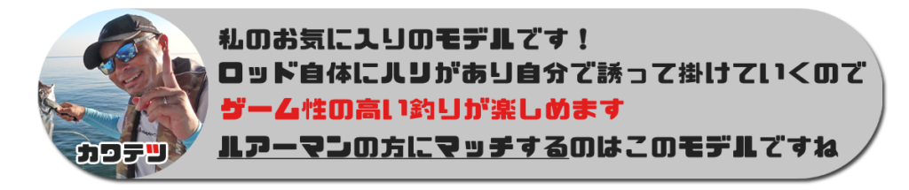 オフショアジギングが好きな人にも特にオススメとのこと! 自分でテンヤを操作してアタリを掛けていきたい攻めの姿勢なアングラーには、このモデルを選ぶのがよさげ!