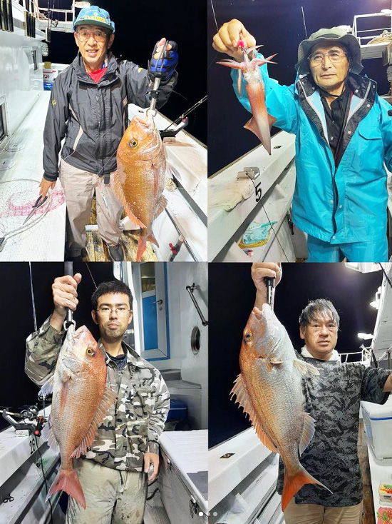 小浜沖のマイカは胴長12~25cm主体に、大剣もまじって大釣りはないものの、ボリュームのある釣果が上がっています。イカダイではマダイが大型まじって上がっています。