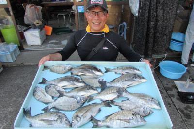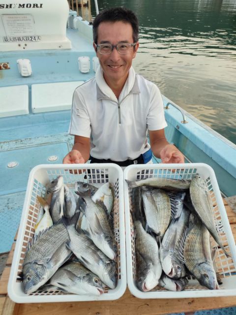 日引の筏はチヌの食いが上向き調子。40~50cm超を1人4~6尾と型が期待できます。