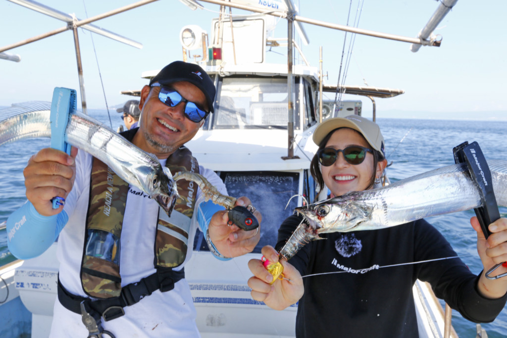 動画内では川上さんが、同船していたジギングのお客さんが釣れているのをみて、ジギングの誘いであるワンピッチジャーク&ステイでスタート。これがハマってタチウオのアタリが連続で続きます!